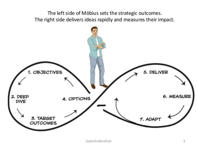 În bucla Mobius, putem începe oriunde considerăm că situația o cere, dar e foarte important să se înceapă cu o înțelegere clară a problemei sau a situației, și după aceea, putem să aprofundăm înțelegerea. Pot fi situații în care putem avea de la început un set definit de opțiuni și trebuie să ne uităm înapoi pentru a fi siguri că avem o foarte bună înțelegere a problemei sau a situației.