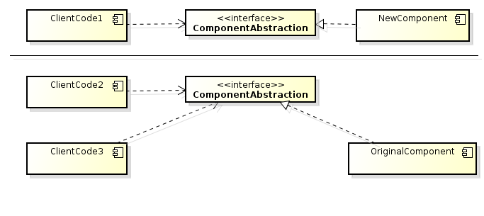 Să luăm în considerare cazul în care abstractizarea la nivel de componentă nu este cea mai bună soluție. Motivele ar putea consta în efort prea mare de modificări pentru a extrage nivelul de abstractizare la nivel de componenta. Pentru astfel de situații putem lăsa codul așa cum este și să alegem o altă tehnică.