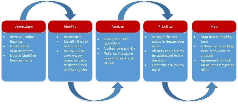 În imaginea de mai jos se poate observa procesul de management al riscurilor într-un mediu de dezvoltare Agile: