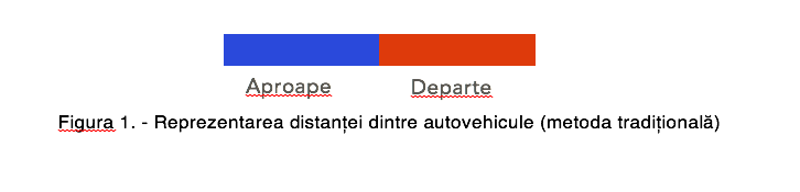 Conform metodei tradiționale, sistemul nostru va putea lua doar două decizii: aproape și departe. Folosindu-ne de Figura 1. ne putem imagina distanța între mașini ca fiind împărțită în două jumătăți egale, fiecare având drept corespondent direct una din cele două decizii. În acest context, faptul că putem lua în considerare doar aceste două decizii trase în urma analizei distanței între mașini duce la măsuri direct proporționale. Voi formula aceste decizii sub forma unor reguli de forma "dacă-atunci" (dacă o condiție atunci o consecință).