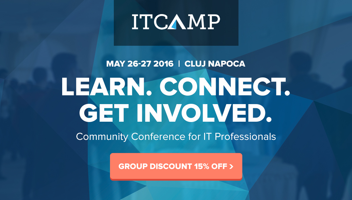 Comunitatea ITCamp organizează cea de a șasea ediție a Conferinței ITCamp în perioada 26-27 mai 2016 la Grand Hotel Italia din Cluj-Napoca. Conferința vizează profesioniștii IT și managerii cu rol decizional care doresc să fie la curent cu ultimele tehnologii, să-și îmbogățească cunoștințele tehnice și care urmăresc participarea la training-uri cu adevărat eficiente, bazate pe tehnologiile disponibile astăzi.
