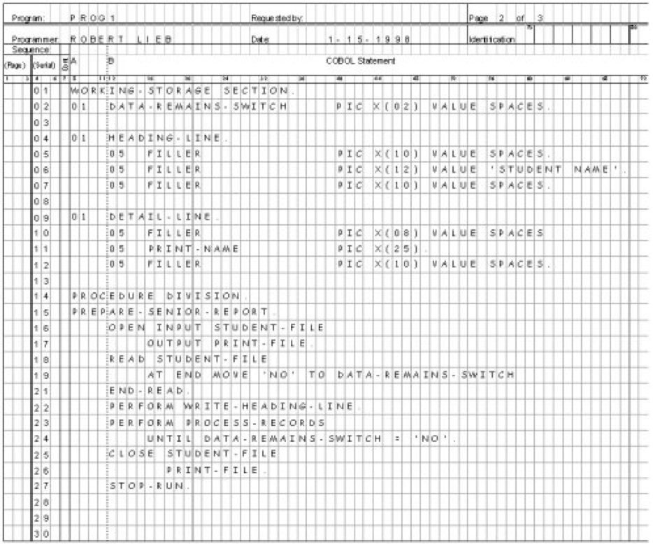 Calculatorul principal, de mărimea unui etaj, avea nevoie de mai multe conexiuni de electricitate specializate, direct de la panoul de comandă. Acest procesa toată informaţia noaptea și printa rezultatul pe hârtie. A doua zi, programatorul citea și interpreta rezultatul. Dacă era vreo eroare, un bug, o greșeală de ortografie, ȋntregul vraf trebuia rescris deoarece cardurile ponsabile erau secvenţiale. Dacă erai norocos, puteai găsi o soluţie care să afecteze un număr redus de carduri. Soluţia presupunea ca același număr de caractere să funcţioneze ȋn exact aceeași regiune de memorie.