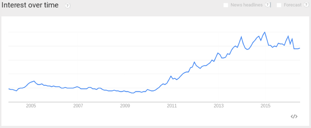 Deci, ce a declanşat CI? Nu există date anterioare anului 2004 pe Google Trends. Consider că adoptarea graduală a practicilor Agile a pus CI pe un trend ascendent.
