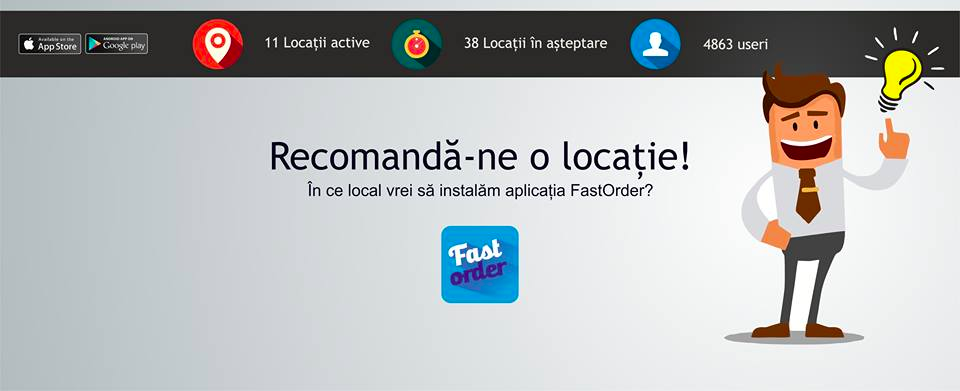 FastOrder este o aplicaţie mobilă care te ajută să dai comanda în restaurante şi localuri. În aplicaţie poţi accesa meniul localului, să alegi ce doreşti să comanzi fără a mai aştepta un chelner. Cei de la masă ta pot adăuga produse la aceeaşi comandă, pot vedea în timp real cât e de plătit iar nota poate fi cerută prin aplicaţie, în orice moment.