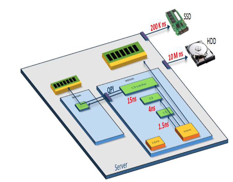 Astfel, citirea datelor de pe Disk nu mai este o problemă din moment ce ele se află în RAM. Noua provocare este transferul lor din memoria RAM către CPU, vezi Fig. 2.