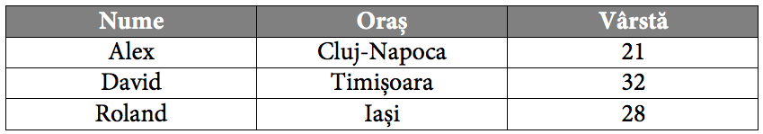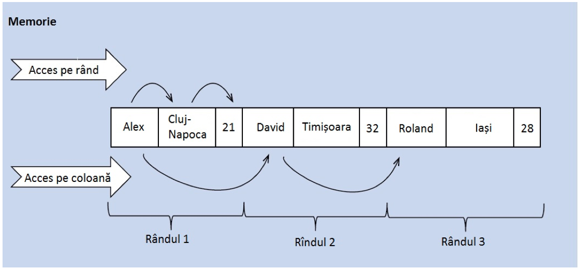 Tabelul 1. Date pentru a exemplifica stocarea pe rânduri și pe coloane