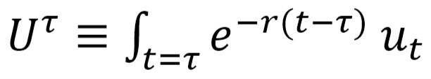 Pentru a modela formal preferințele inter-temporale, fie Uτ notația pentru "preferințele inter-temporale" și fie ut utilitățile instantanee. Economiștii presupun reducerea exponențială: