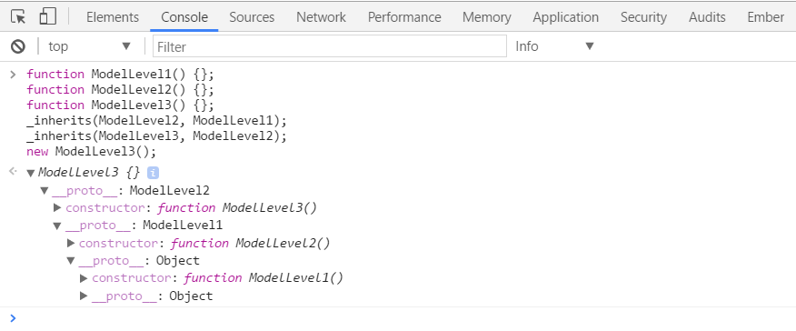 - "copil". Acest dezavantaj poate părea nesemnificativ până când îl întâlnești în practică, atunci când depanezi un lanț de clase. Devine dificil de înțeles ce clasă instanțiază un anumit obiect și ce clasă derivează. Aveți aici un exemplu din consola Google Chrome: