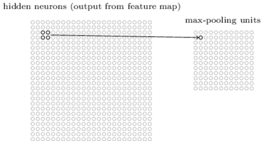 Un strat de pooling simplifică informația primită ca output de la stratul de convoluție. Acest procedeu urmează de regulă imediat după stratul de convoluție. Stratul de pooling constă în crearea unei ferestre de o dimensiune n x n care se mișcă în cadrul inputului colectând o anumită valoare. Unde n este dimensiunea ferestrei, aceasta putând fi diferită de cea din cadrul local receptive fieldsurilor. În cazul acesta am folosit max pooling, unde dintr-o regiune se ia valoarea maximă.