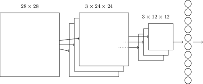 unde sigma este o funcție de activare ca cea sigmoidală sau rectified linear untis (ReLU), cea din urmă fiind folosită în cadrul algoritmului și n este dimensiunea ferestrei. Se deduce astfel, că toți neuronii din primul strat ascuns detectează aceleași caracteristici doar că la locații diferite ale imaginii de input.