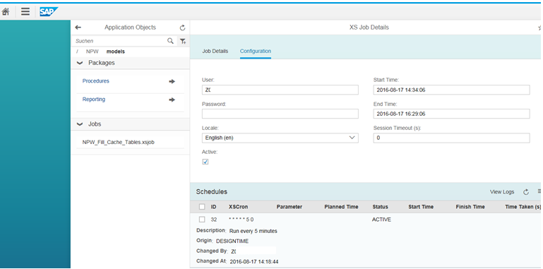 Figura 3: SAP HANA XS Administration Tool - componenta XS JOB Dashboard
