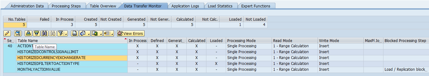 Figura 9: Statusul procesării tabelelor din selecția curentă