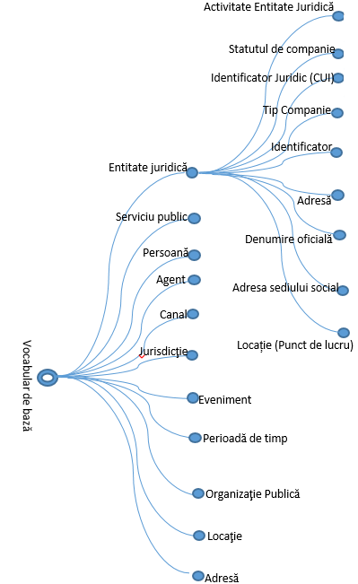 În ceea ce privește implementările la nivelul de detaliere ale semanticilor pentru interoperabilitatea datelor (inclusiv la nivel european), sunt urmate abordările recomandate de SEMIC - Semantic Interoperability Community, care reprezintă o inițiativă a Comisiei Europene pentru îmbunătățirea interoperabilităţii semantice a sistemelor interconectate de e-Government. Un prim nivel al unei astfel de reprezentări este redat în figura următoare: