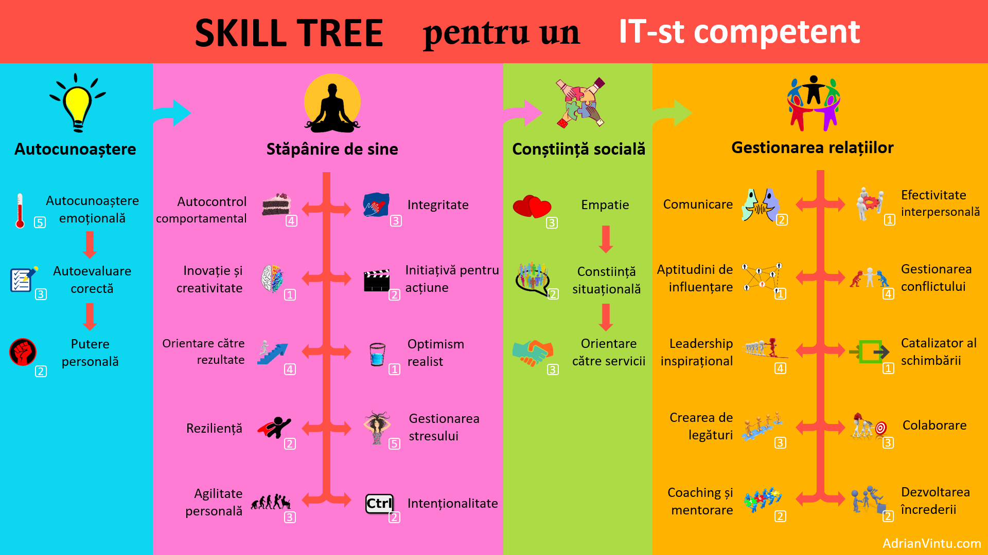 Pentru care aptitudine vrei să lucrezi chiar acum? Ai figura cu SKILL TREE-ul, poți oricând să o printezi și să o ai în fața ta pe birou.