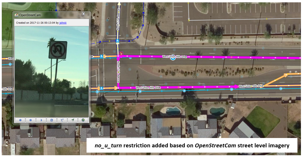 În a doua parte a taskului, am reușit să identificăm și să adăugăm restricții și pe baza Mapillary Imagery și Mapillary Object Layer.