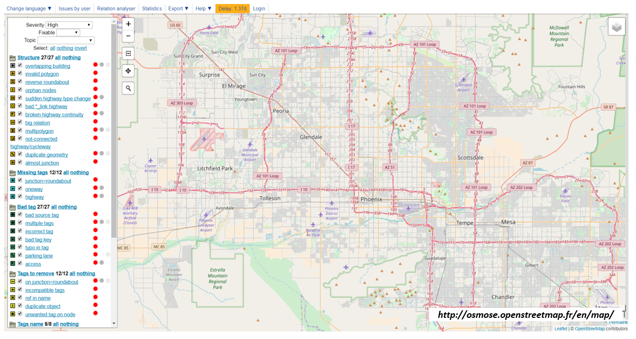 Prin atingerea obiectivelor menționate mai sus, Telenav vizează îmbunătățirea calității map feature-urilor OSM utilizate în navigație, din zona Phoenix, Arizona.