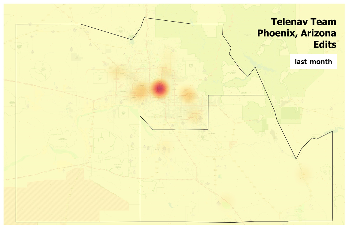 Acest proces a început din noiembrie 2017 și a durat 3 luni. În acest timp echipa Telenav a reușit să revizuiască o cantitate mare de intersecții dintre autostrăzi, drumuri principale, secundare, terțiare și rezidențiale din zona Phoenix.