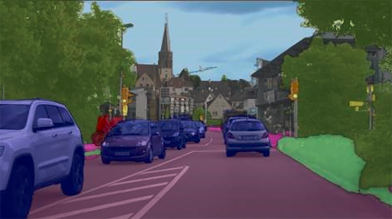 Viziunea artificială este o disciplină care se ocupă cu extragerea de informații din imagini și din date video. În contextul conducerii automate, folosind metode de viziune artificială este teoretic posibil să se extragă dintr-un șir bidirecțional de numere (imaginea) tot ceea ce șoferul poate să vadă. De exemplu: obiectele și elementele de infrastructură menționate mai sus. O clasă de metode ar fi cele bazate pe învățare. Acestea au câștigat teren în ultimii cinci ani datorită creșterii popularității rețelelor neuronale convoluționale (deep learning), la fel cum de altfel și inteligența artificială a crescut în popularitate, datorită rezultatelor semnificativ mai bune aduse de rețelele neuronale convoluționale comparativ cu metodele clasice de învățare. Din punct de vedere al percepției, rețelele neuronale convoluționale sunt foarte eficiente pentru segmentarea semantică, care presupune estimarea unei clase pentru fiecare pixel (Figura 5) sau pentru detecția obiectelor care implică estimarea unui dreptunghi în jurul anumitor clase de obiecte.