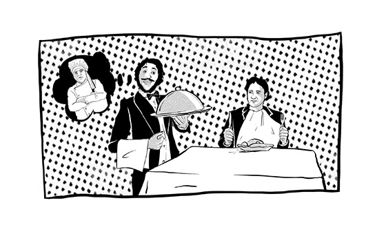 După cum v-ați dat seama până acum: toate exemplele sunt legate de mâncare pentru că sunt un gurmand și în timp am devenit un pasionat devorator de fripturi de vită. La fel ca toți începătorii care se respectă, inițial îmi plăcea ca friptura să fie foarte bine făcută. Apoi, ca un cunoscător în devenire am început să savurez fripturile prăjite mediu. Acum, imaginați-vă într-un restaurant respectabil. Chelnerul colaborează cu noi ca un profesionist. Comandăm friptura și când chelnerul ne întreabă cum o vrem, îi spunem "bine făcută". Chipul i se schimbă, zâmbetul lui pălește și o venă începe să salte jucăușă pe frunte. Pentru că acum el trebuie să meargă să-i paseze comanda Chef-ului. Durerea apare - știm cu toții - pentru că la bucătarul-șef, maximul acceptat este "mediu", iar "bine făcut" este o adevărată blasfemie.