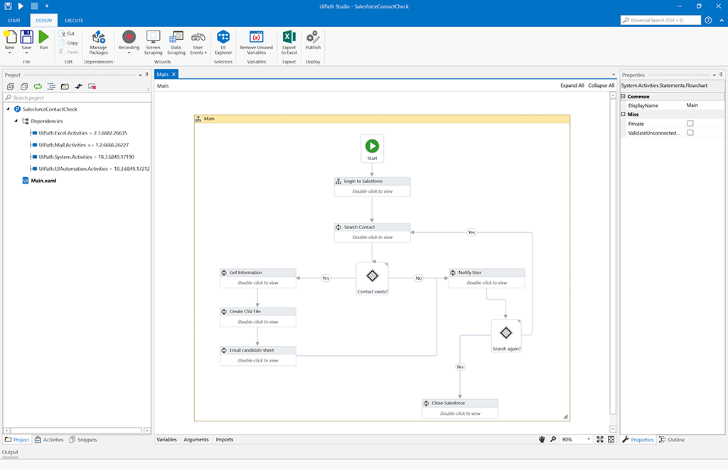 când automatizăm munca unui utilizator real, avem nevoie de o perspectivă de proces (ca secvență de operații succesive, alternative, condiționate sau provocate de anumite evenimente de executat (spre exemplu: preluarea datelor din site-ul intern de HR, verificarea situației în aplicația de cheltuieli și trimiterea unui e-mail celor care mai au de rezolvat câte ceva);