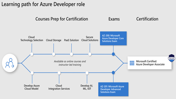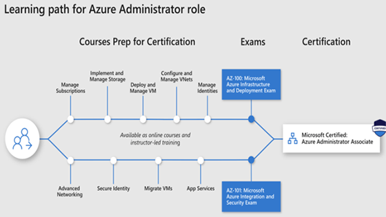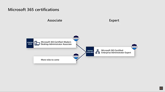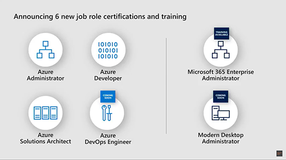 Noile trasee de certificare asociate pe job-roles, disponibile în acest moment sunt următoarele: Microsoft Certified Azure Fundamentals, Azure Administrator, Azure Developer, Azure Solutions Architect, Azure DevOps Engineer și Microsoft 365 Certified Security Administrator Associate, Modern Desktop Administrator, Enterprise Administrator.