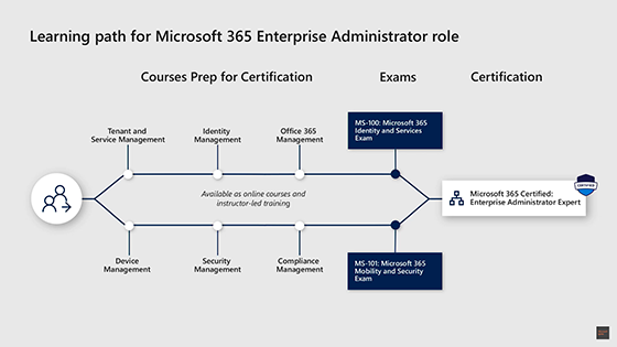Pentru certificările Microsoft 365, traseul de instruire este următorul: