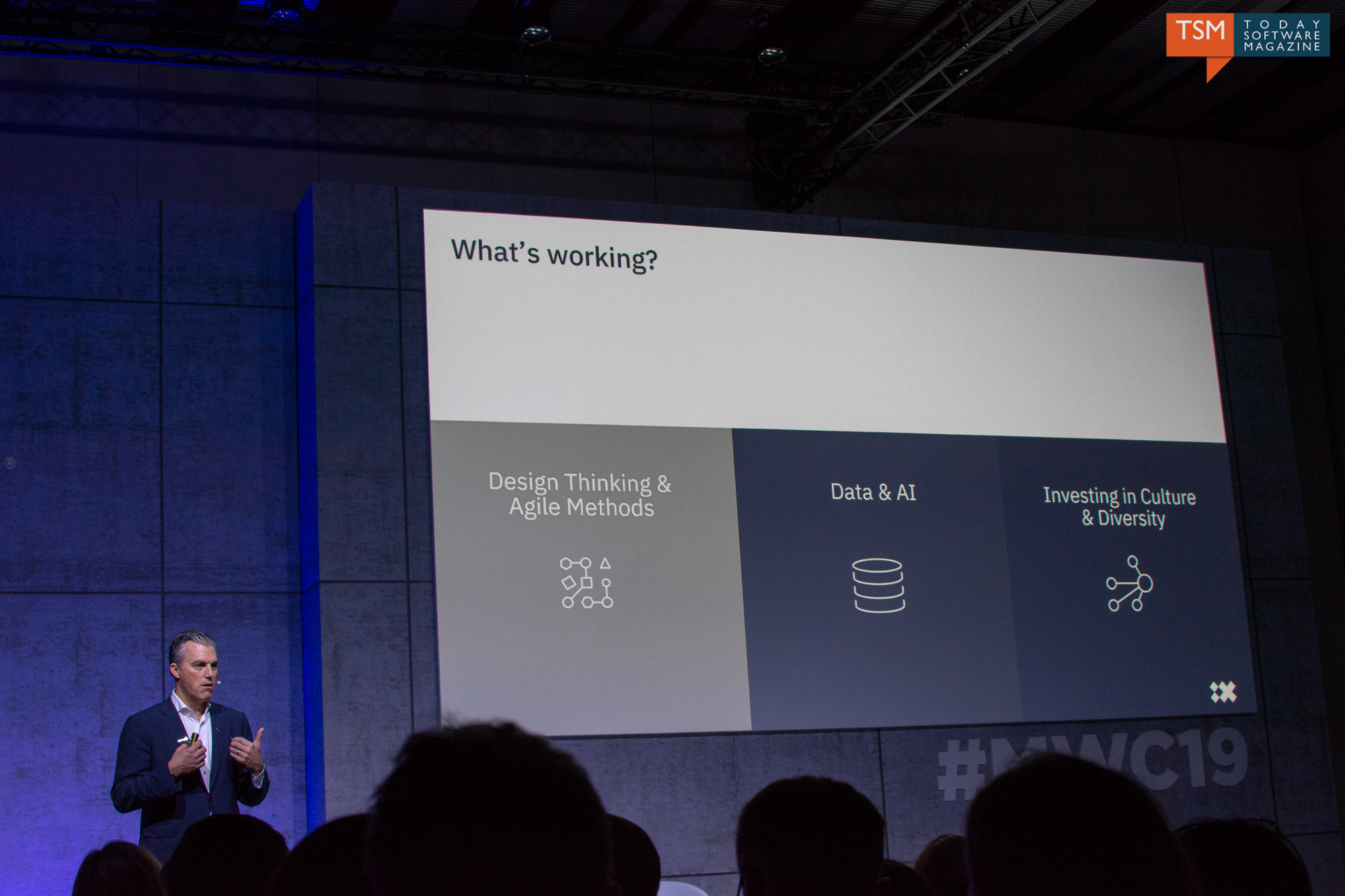 După ce am auzit multe povești și informații noi, am decis să mai asist la o serie de prezentări realizate de IBM: Reality of Digital Transformation: What Works & _Doesn't Work. Prima prezentare a fost cea a lui Eric Berridge, CEO Bluewolf (companie IBM) de unde am învățat că nu trebuie să mai realizăm produse, dar trebuie să creăm experiențe utilizatorilor. Exemplu dat este despre cumpărarea unui calculator, situație în care totul se desfășoară automat și foarte rapid : de la alegerea acestuia, la plată și la primirea produsului final. Totul poate fi combinat cu AR în produsele următoare și putem deja vorbi de o rețetă a succesului. Cum se va integra AI-ul în toate acestea? Ne va oferi opțiuni și opinii, astfel încât să fim mai bine informați și să putem alege mai bine. La final, am primit un sfat legat de companii: dacă produsele pe care le realizăm nu sunt suficient de bune pentru clienții noștri, atunci nu sunt bune nici pentru angajați.