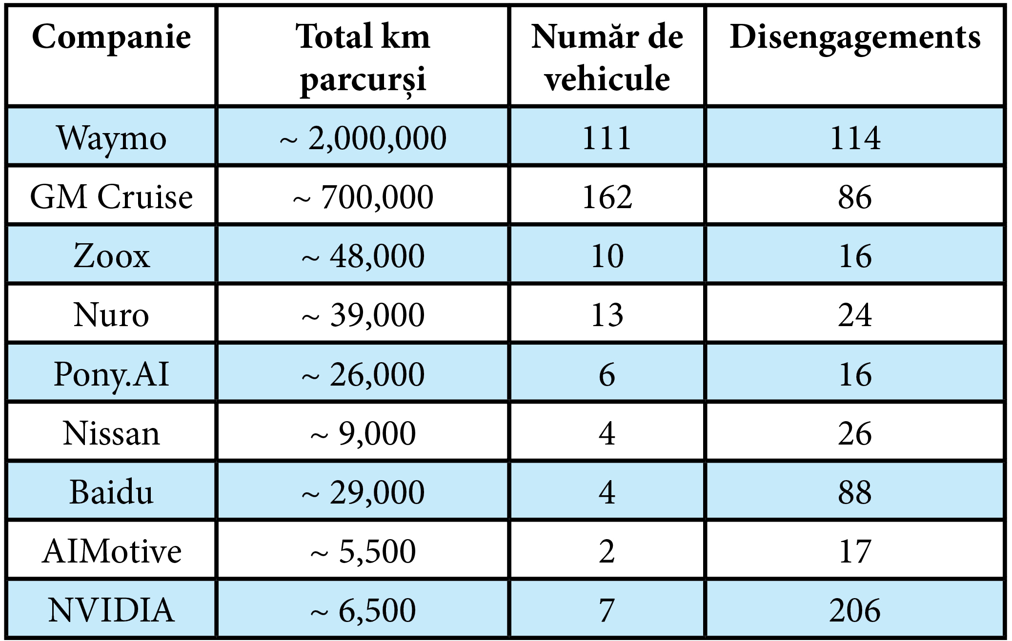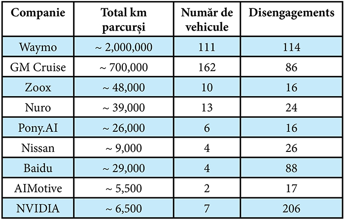 California DMV (Department of Motor Vehicles) a cerut câte un raport de la companiile care au operat vehicule autonome sub o licență de testare pe drumurile publice în perioada decembrie 2017 - noiembrie 2018.