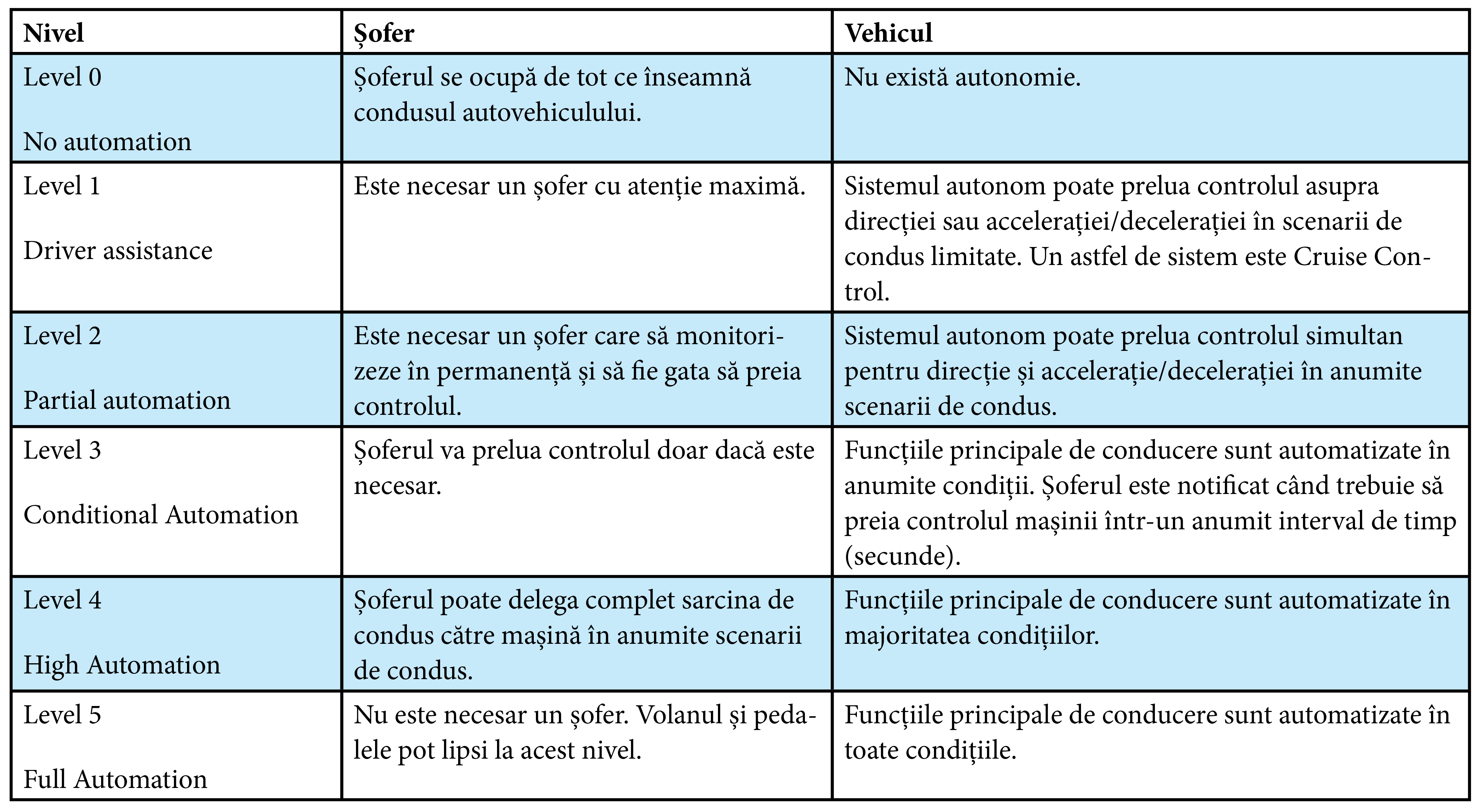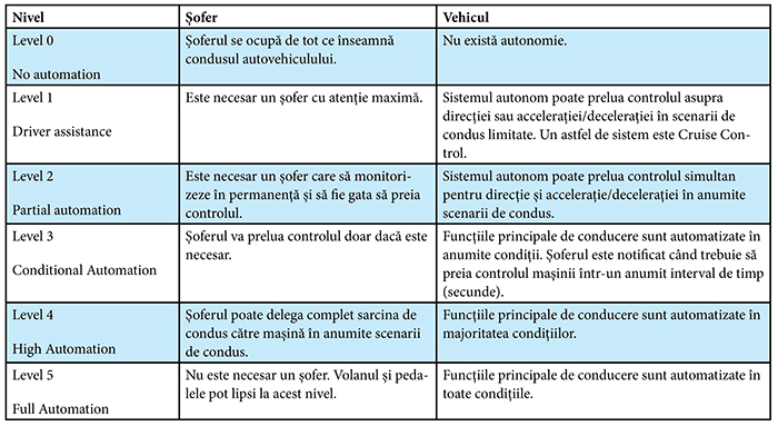 Vom analiza cele șase nivele din perspectiva șoferului și a vehiculului.
