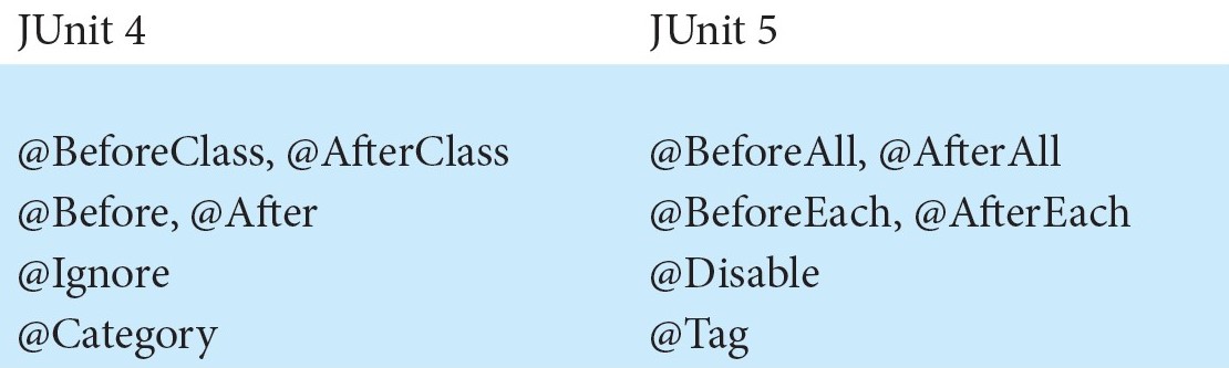 Următoarele diferenţe importante există între JUnit 4 şi JUnit 5:
