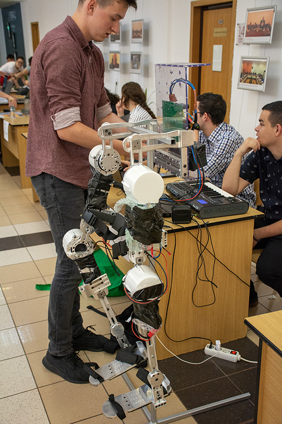 Acesta este construit folosind un model matematic pentru păstrarea centrului de greutate într-o poziție stabilă. Motoarele folosite sunt de o mare precizie și putere. Controlul se realizează printr-un Board cu multe conexiuni, astfel încât să se reducă numărul cablurilor folosite și pentru diminuarea inducției care poate apărea. Mișcările de bază, cum ar fi ridicarea de pe un scaun, pot fi comandate prin intermediul unei aplicații mobile Android. Proiectul este realizat împreună cu un colaborator din Timișoara iar planul este să se continue proiectul sub forma unui startup.