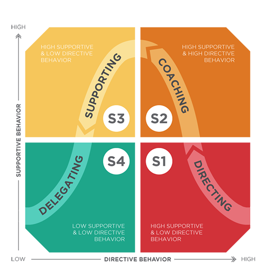 Corespunzătoare acestor patru niveluri de dezvoltare ale individului, Blanchard identifică patru stiluri diferite de a-l conduce și ajuta pe acesta la îndeplinirea sarcinilor.