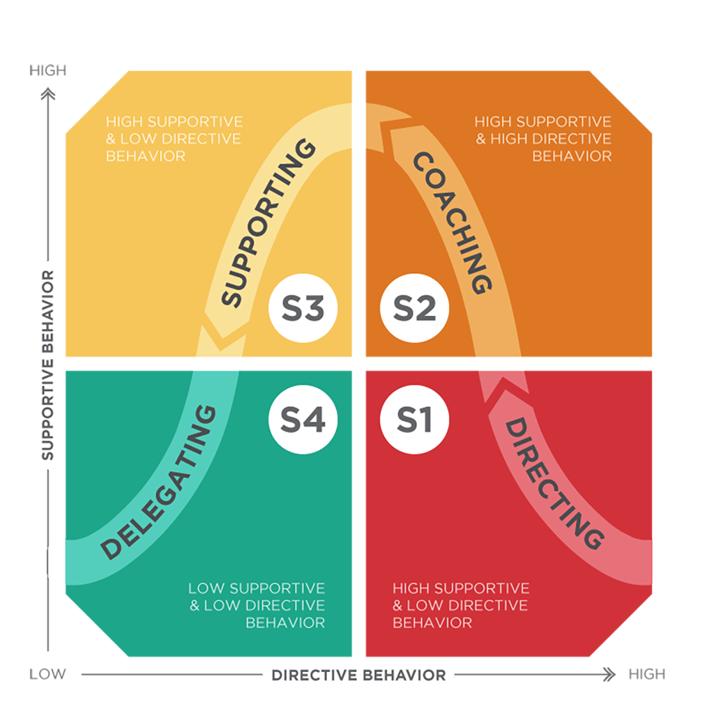 Modelul descrie patru stiluri de leadership și patru niveluri de dezvoltare, aplicabile în nenumărate domenii și situații. Acestea sunt: