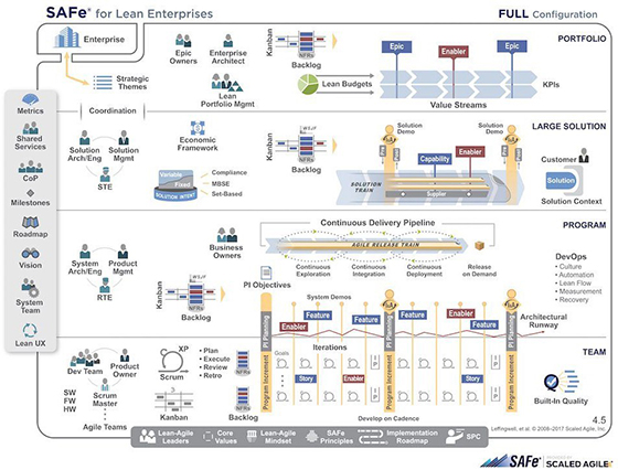 Subiectul articolului de față se referă la o nouă perspectivă Agile, numită - SAFe. Termenul de SAFe (the Scaled Agile Framework) a fost introdus în anul 2011 de către Dean Leffingwell - autor în domeniul software și antreprenor. Scopul acestei noi metodologii este de a lua cele mai bune practici din Lean, Kanban, Scrum și XP și de a le aplica la nivel de echipă, program, soluții mari și portofoliu. Altfel spus, vorbim despre o flexibilitate necesară echipelor și organizațiilor cu mai mult de 250 de angajați. SAFe-ul ajută organizația să dezvolte în mod eficient soluții software, păstrând în același timp un proces centralizat de luare a deciziilor care este necesar la nivel de companie. Din punct de vedere al eficienței în afacere, implementarea acestei metodologii, aduce cu sine rezultate uimitoare.