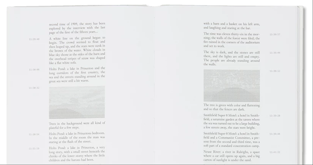 Sau poate, cu doar 24 Euro, ați cumpărat (și citit) deja 1 the Road - promovată pe Internet ca prima carte scrisă de un AI, într-un road trip pe ruta New York - New Orleans, într-un Cadillac echipat cu o camera video, un GPS, un microfon și un ceas - toate conectate la o mașina portabilă de scris (firește, un AI) care se 'hrănea' cu imagini și informații în timp real. Iar cartea nu este o simplă consemnare a condițiilor de trafic și de vreme, după cum se poate observa în imaginea alăturată.