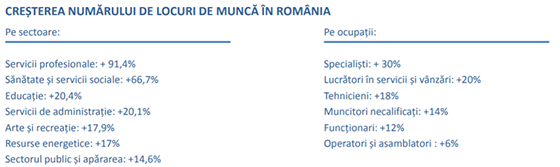 Conform studiilor Uniunii Europene "Skills Panorama", dinamica locurilor de muncă în România va fi următoarea: