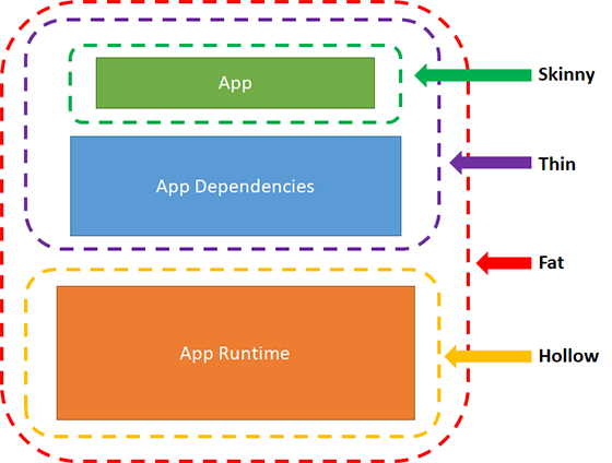 Este opusul lui Thin. Conține doar ce e necesar pentru ca aplicația să ruleze, dar nu conține aplicația în sine. De fapt, este un server de aplicație care poate rula aplicația, dar comparativ cu serverul tradițional, această pre-împachetare include doar dependențele necesare pentru a rula o aplicație specifică și nu mai mult de atât.