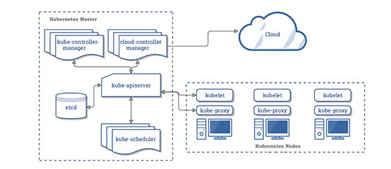 Ultima componentă și singura opțională a Control Plane-ului, cloud-controller-managerul, este specifică mediului de rulare, fiind implementată de către companiile de IaaS și cloud. Scopul ei este de a ușura integrarea dintre concepte din k8s și servicii de cloud, cum ar fi un load balancer, definit independent de implementare și în mod abstract într-un obiect de tip Service în k8s. Implementarea se realizează prin asocierea unui load balancer specific platformei de cloud (de ex. AWS ELB/ALB/NLB).