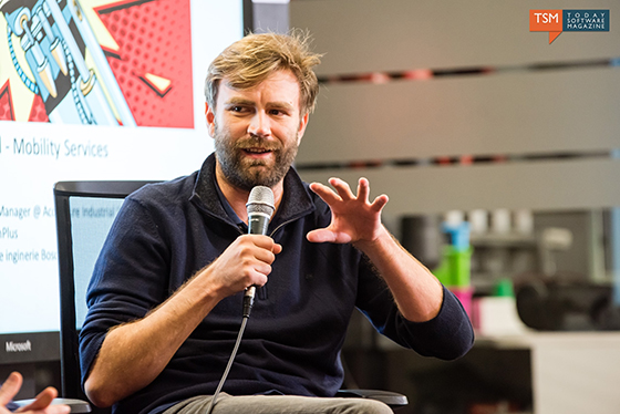 Ionuț Muntean : Înainte de a-ți răspunde doresc să completez răspunsurile colegilor mei. În zona de start-up-uri sunt importanți trei T: team, technology, traction. Team și technology le poți influența tu. Tractionul trebuie să existe pe piață. Trebuie să găsești o nevoie ce există pe piață. La Bosch am avut platforma Grow pentru start-up-uri și am început cu customer interviews. Platforma Grow este pentru angajații Bosch care doresc să facă un start-up. Obții susținerea unui mentor și există mai multe programe de parcurs: se evaluează ideea, se face un value proposition, un canvas pentru business model/potențiali clienți. Această ultimă etapă durează 10 săptămâni și faci multe pivotări, schimbi ideea de business. Ajută dacă există un prototip. Am avut și noi o idee în Cluj, dar nu am dus-o mai departe, deoarece nu am avut un business model suficient de bun.