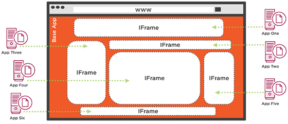 Pentru genul acesta de soluție, există frameworkuri care ajută la orchestrarea aplicațiilor scrise ca IFrame-uri. Practic, dacă fiecare IFrame ar afișa niște metadate care prezintă structurile de date cu care ele lucrează și API-urile pe care le expun, atunci s-ar putea crea UI-uri noi sau chiar scenarii de business noi, doar prin configurare.