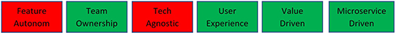 Team Ownership: aplicație independentă cu code repository propriu, iar echipa deține controlul total al codebase-ului (pe verticală, inclusiv partea microservicii și repository) .