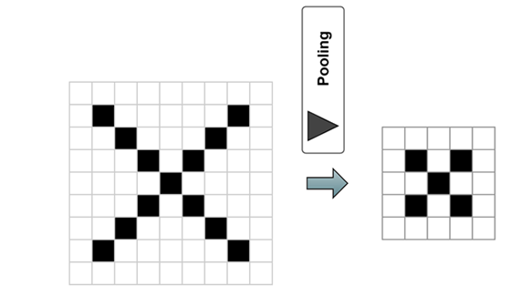 O altă operație necesară în astfel de rețele este aceea de reducere a dimensiunii imaginilor intermediare, fără a se pierde din trăsăturile esențiale şi pentru a uşura calculele viitoare. Acest lucru se realizează cu stratul de Pooling (fig. 9).