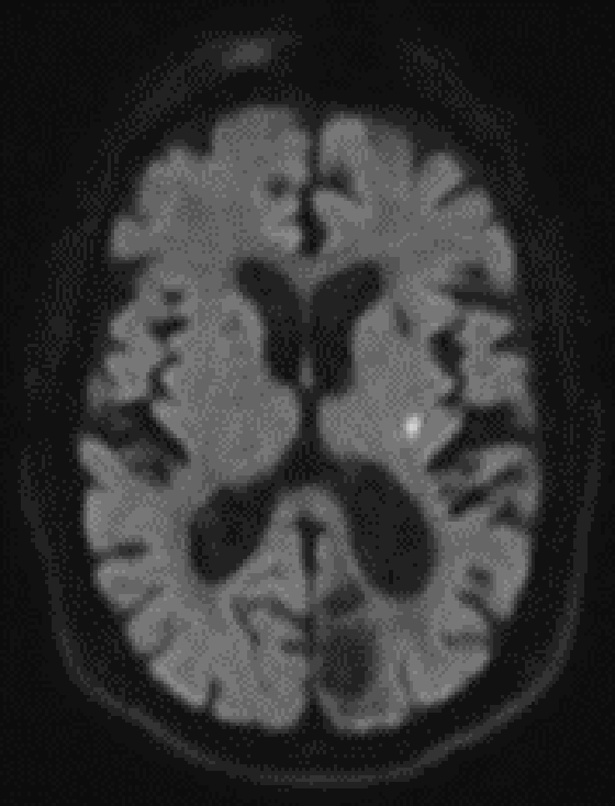 Fig. 3 Simulare detecție de infarct cerebral lacunar acut din RMN-DWI. Ref: [7]
