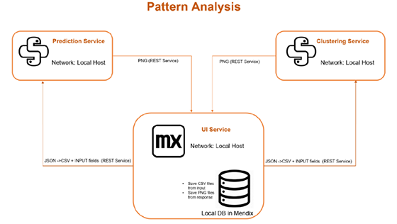 Soluția cuprinde o colecție de micro servicii consumate de o aplicație client dezvoltată cu platforma Low Code, Mendix. Utilizatorii pot să folosească aplicația pentru a încarcă fișiere cu date și să ruleze algoritmii de analiză pe ele.