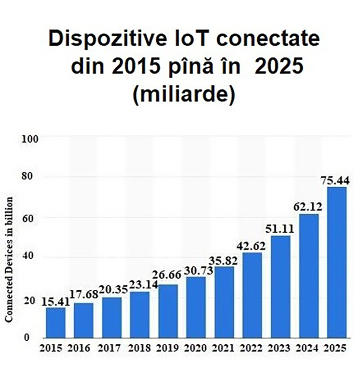 Sursă foto : https://www.researchgate.net/figure/Internet-of-Things-IoT-connected-devices-from-2015-to-2025-in-billions_fig1_325645304