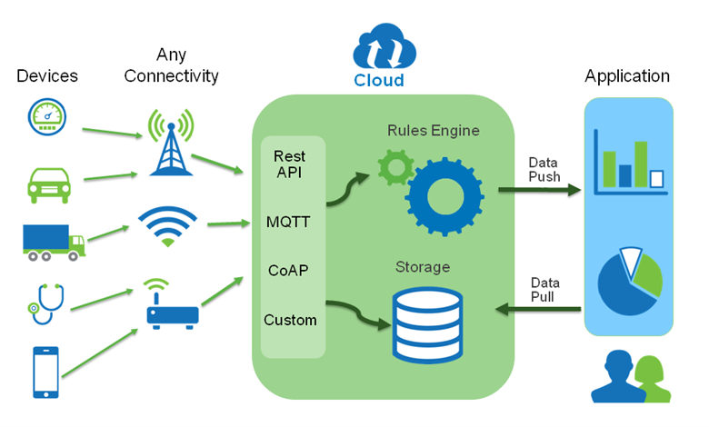 Cu toate acestea, cloudul este mai mult decât o unitate de stocare. Pentru a înțelege informațiile dispersate, colectate printr-o serie de dispozitive IOT, aceste informații trebuie procesate și analizate în mod eficient.