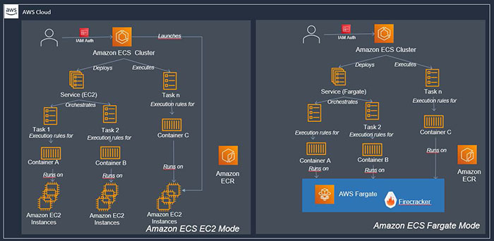 Figură 3 Modurile Amazon ECS: EC2 și Fargate