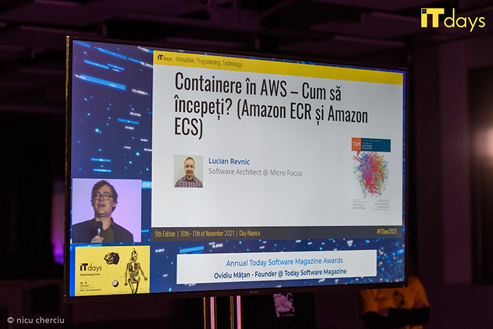 Premiul îi revine lui Lucian Revnic pentru articolul său: Containere în AWS - Cum să începeți? (Amazon ECR și Amazon ECS). Îți mulțumim, Lucian! Mă bucur că ne-am văzut pe scena de la IT Days.