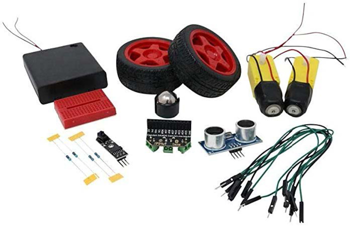 Pentru partea de mișcare precum motoarele, rotile și controllerul de motoare, am cumpărat un kit foarte ieftin (costa 18 EURO, https://camjam.me/?page_id=1035). Kitul are propriul software scris în Python, dar am ignorat complet partea software. (Am aruncat o privire pentru a-mi da seama cum folosește Python shieldul pentru motoare și am portat câteva clase pentru a lucra cu ele).