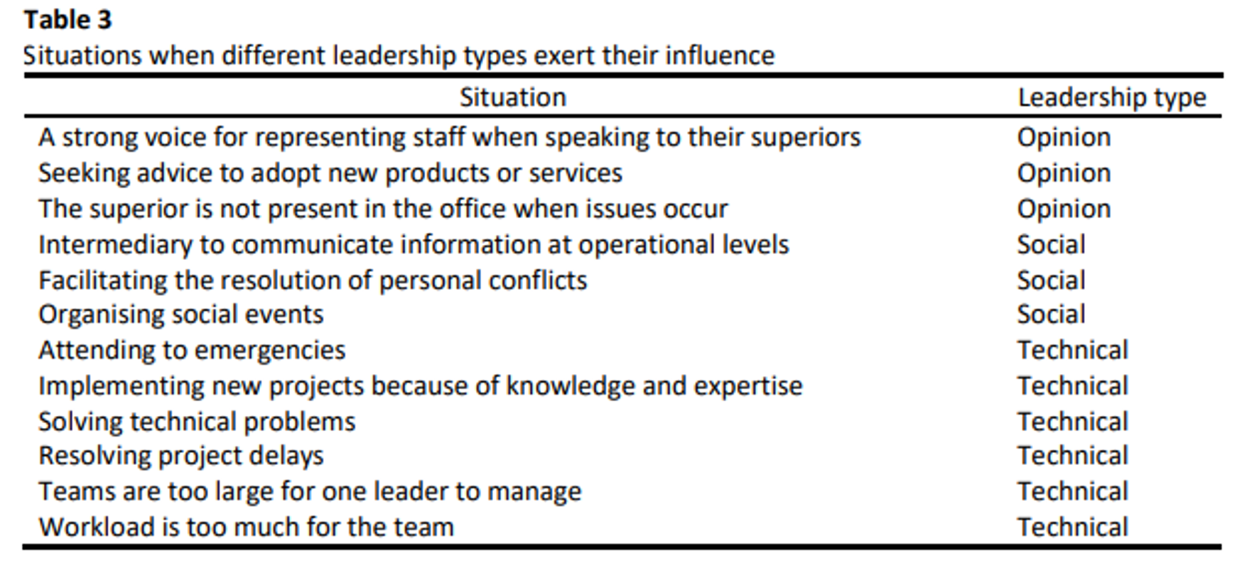 Mai mult, au fost identificate patru noi comportamente ale liderilor informali: "primii care sar în ajutor", "facilitatori de comunicare dintre utilizatori și oameni tehnici", "care au un răspuns rapid" și "care vorbesc deschis despre riscurile din proiecte".